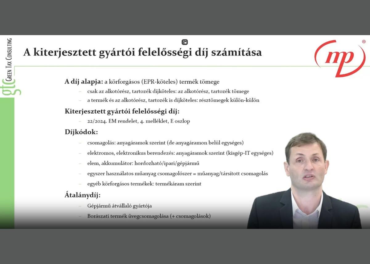 2025. október 7-én Kelemen István, a Green Tax Consulting vezető tanácsadója tartott részletes szakmai előadást a kiterjesztett gyártói felelősség (EPR) és a környezetvédelmi termékdíj szabályozásáról. Az elmúlt két évben az EPR vált a hazai vállalatok egyik legnagyobb adminisztratív és jogértelmezési kihívásává, miközben a termékdíj területén is komoly változások történtek. Az előadás célja az volt, hogy a résztvevők gyakorlati példákon keresztül lássák, hogyan alkalmazhatóak ezek a mindennapi működésben.